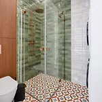 Οι παροχές μπάνιου επίσης περιλαμβάνουν ντους. Υπάρχουν επίσης στεγνωτήρας μαλλιών και μεγάλες πετσέτες μπάνιου.